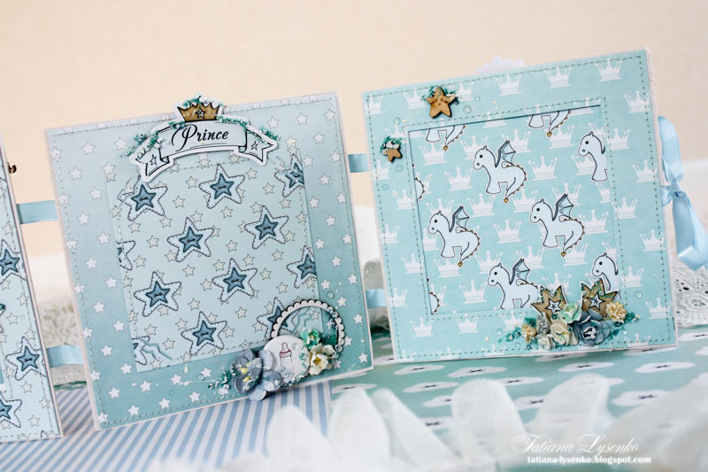 У меня сейчас в работе большой детский альбом и хотелось сделать в виде комплимента для заказчицы что-то небольшое в дополнение к нему. Открытку отмела сразу ввиду ее непрактичности, а вот карманный вариант рамки для фото с местом для записи о первых самых важных мгновениях мне понравился. Удобно, что можно по желанию изменить предназначение - в рамку с пластиковым окошком вложить бирочку из роддома, а на откидных листочках разместить первые фото малышки)