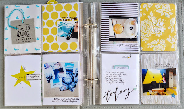 источникТакое красивое и весеннее сочетание светлых карточек с яркими желтыми особенно удачно выглядит, если на фотографиях также присутствует этот цвет. При оформлении своих разворотов первое, на что я обращаю внимание при выборе палитры- это фотографии. Именно они диктуют цветовое решение в оформлении разворота.